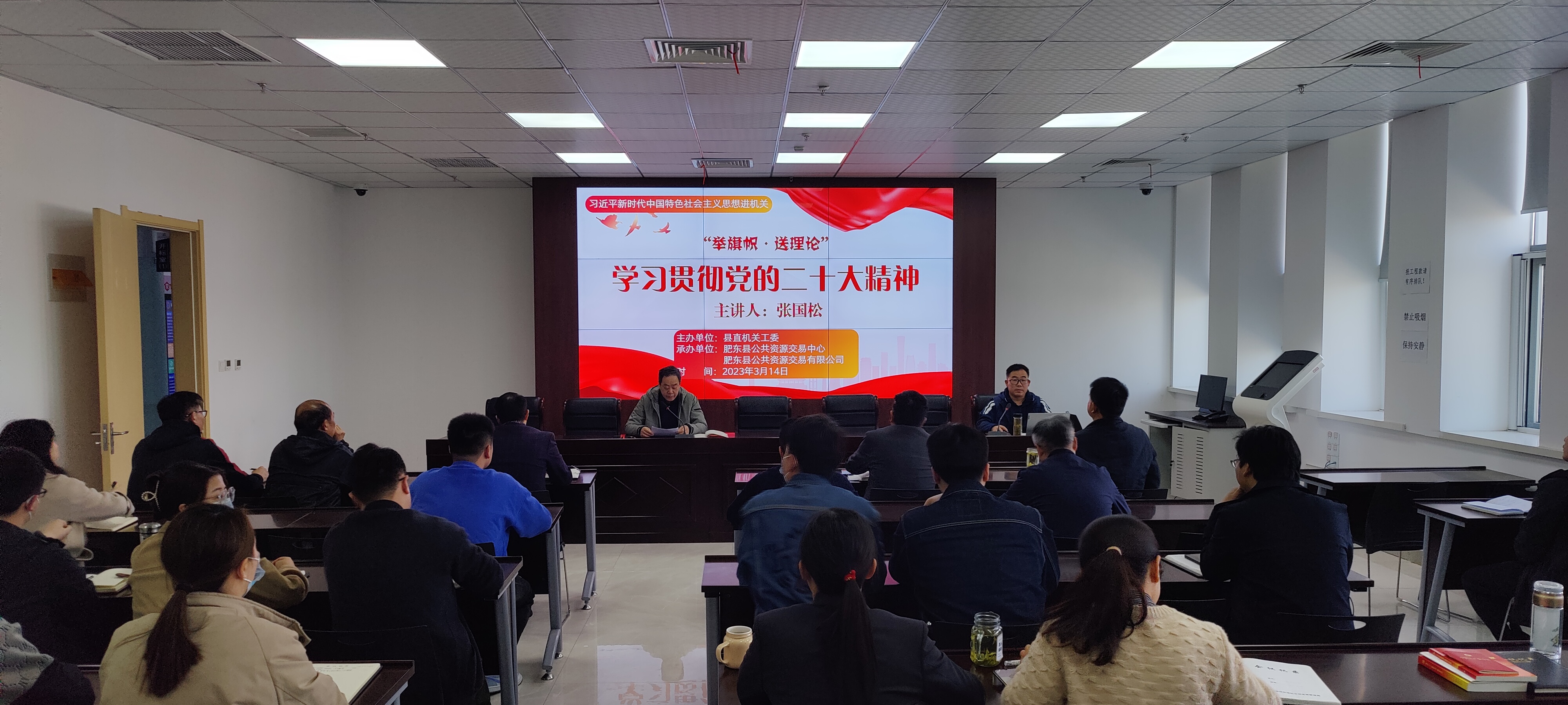 張國松同志以“深入學(xué)習(xí)貫徹黨的二十大精神”為主題,圍繞關(guān)于黨的二十大的重大意義、過去5年的工作和新時(shí)代10年的偉大變革、中國式現(xiàn)代化、堅(jiān)持黨的全面領(lǐng)導(dǎo)和全面從嚴(yán)治黨等八個(gè)方面,對黨的二十大精神作了全面宣講和深入解讀。宣講站位高遠(yuǎn)、內(nèi)涵豐富,有理論高度、有思想深度,內(nèi)容生動(dòng)而賦有感染力,大家邊聽邊記,感受波瀾壯闊的歷史征程和新時(shí)代偉大變革,現(xiàn)場反響熱烈。此次宣講對公司全體干部職工全面理解和把握黨的二十大精神有重要的指導(dǎo)意義,與會(huì)人員紛紛表示,要認(rèn)真學(xué)習(xí)宣傳貫徹黨的二十大精神,始終沿著習(xí)近平總書記指引的方向闊步前行,緊密結(jié)合各項(xiàng)重點(diǎn)工作任務(wù),堅(jiān)持學(xué)以致用、用以促學(xué)、學(xué)用相長,切實(shí)把黨的二十大精神落實(shí)到日常工作之中?!?/span>黨的二十大召開以來,公司通過自學(xué)、集中宣講、黨日活動(dòng)等多種形式教育引導(dǎo)全體干部職工,堅(jiān)持不懈在學(xué)深悟透弄懂真信上下功夫,確保黨的二十大精神在公司落地生根,奮力譜寫肥東縣公共資源交易代理服務(wù)事業(yè)健康發(fā)展新篇章。