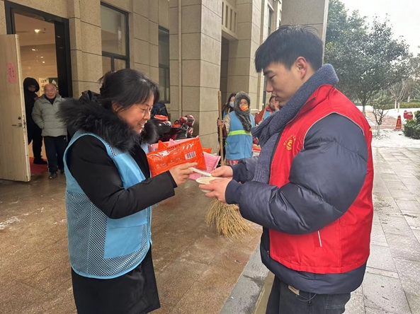 軟糯Q彈的熱湯圓,甜在嘴里,暖在心間。2月23日上午,肥東縣斌峰·和睦公館的環(huán)衛(wèi)工人品嘗著志愿者們端上來的熱湯圓,滿身寒意被驅(qū)散,心間洋溢著被牽掛的溫暖?!翱斐酝霚珗A暖暖身子吧?!薄疤崆白4蠹以?jié)快樂,你們辛苦了?!碑?dāng)日,和睦公館物業(yè)大廳充滿著歡聲笑語,其樂融融。